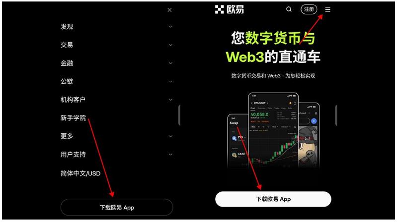 安卓用户:访问欧易官网或文中底部左侧的下载APK安装包或点击APP下载