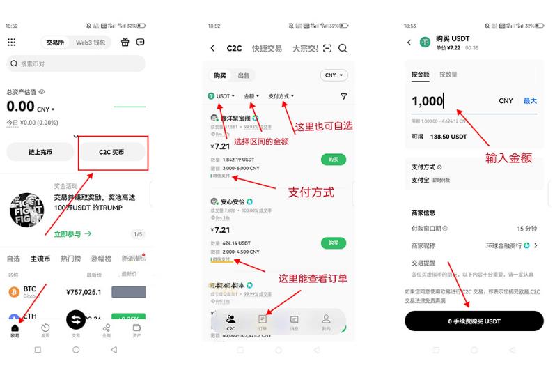 C2C交易是平台撮合用户与认证商家进行点对点交易,支持支付宝、微信、银行卡等多种支付方式,非常适合新手。