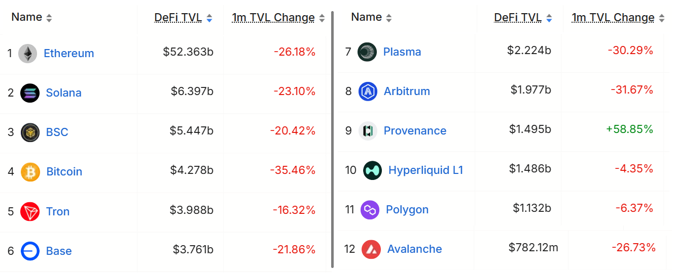 按锁定总价值排名的区块链,美元。来源:DefiLlama